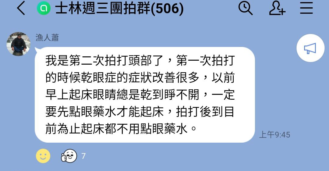 眼睛乾不舒服的情形,代表體內的水份不足; 這種體內水份不足的情形,不是喝水可以解決的,要多加強拍後背 + 委中 + 湧泉 + 拍頭! 清三焦的瘀堵,通暢,對眼睛乾的情形,有加份;