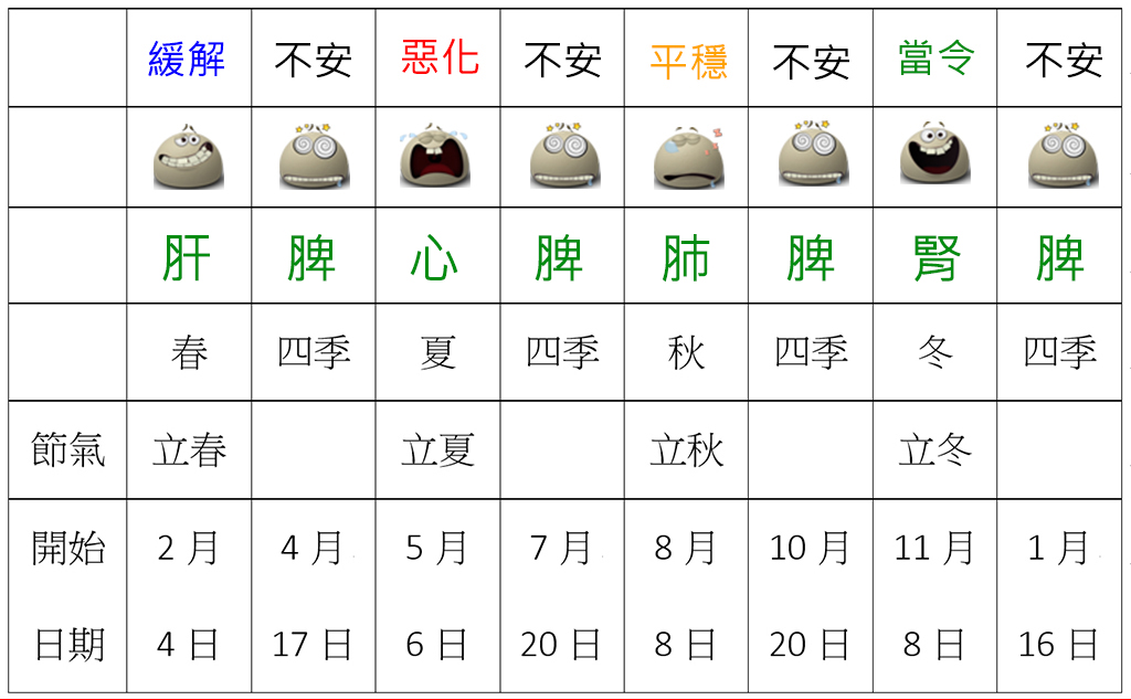 臟腑病症的演化,可以區分成好多種,有大運,年運,節氣,日干支和時辰。