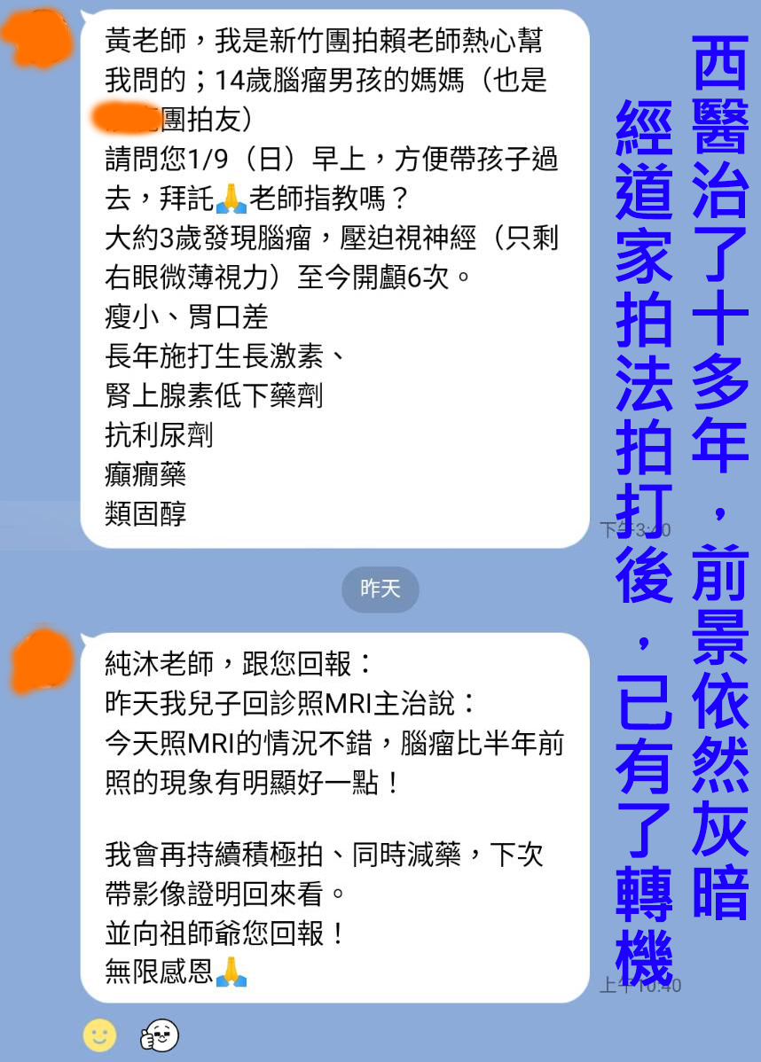 這位桃園團拍的拍友,他拍了一年後,改善了多年的頭部腫瘤,還有膝蓋的不適症狀也完全恢復;