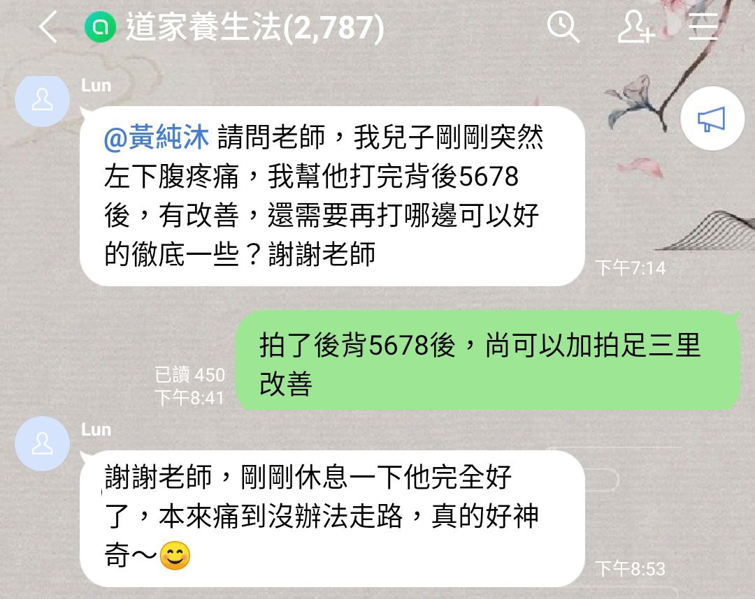 腹痛時,[前病後治] 拍後背對應處改善