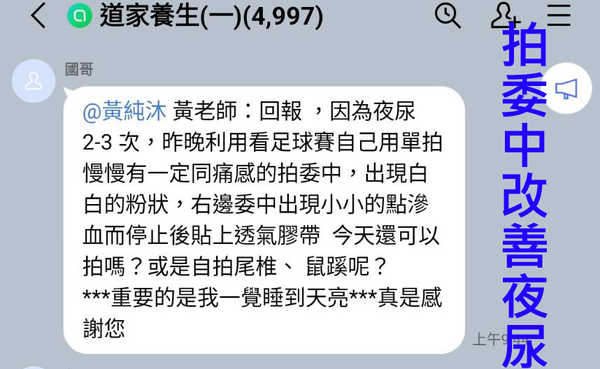 通常不嚴重的夜尿,拍委中,就可以改善了。