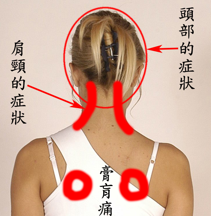 這個情形同頭部與膏肓的症狀是一樣的,都是肝的反射區;