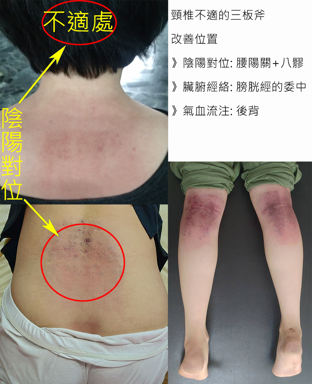 答:委中,手肘這二個位置,給拍到不痛的程度後,就會好很多了,建議請團拍老手拍,或助拍老師幫拍;然後再按標準流程,按部就班的拍。