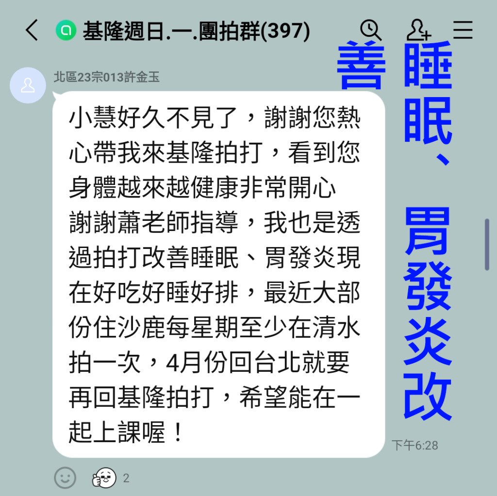 〉》案例:團拍改善了自律神經失調的失眠[1]