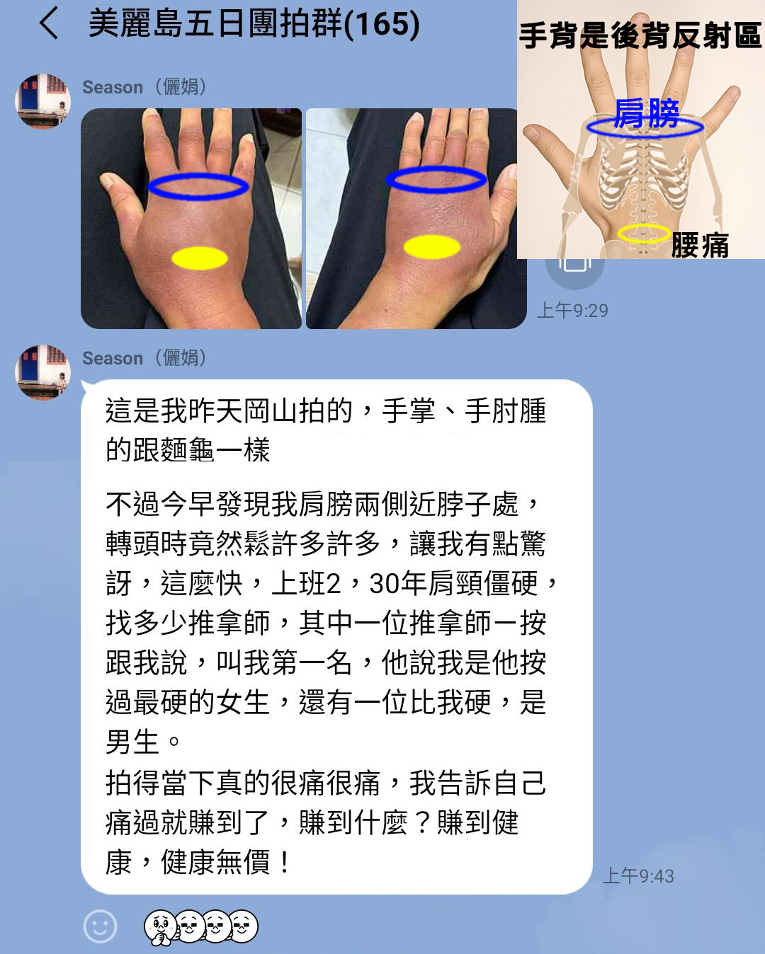 重點是,這十二經絡的原穴,都在手腳掌的區域,自已可以很好的拍到;