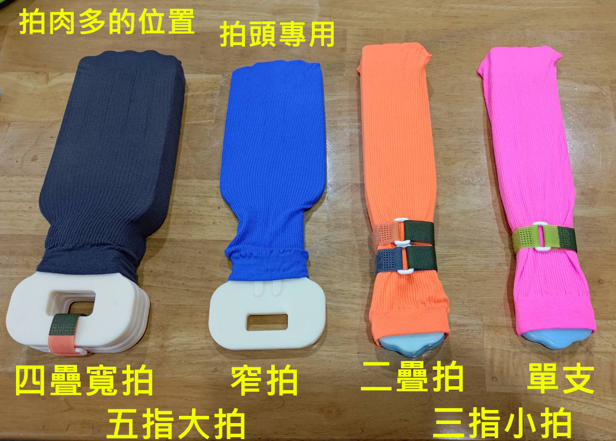 ① 五指的大拍,可以堆疊拍後背, 屁股或身上肉多的地方;
