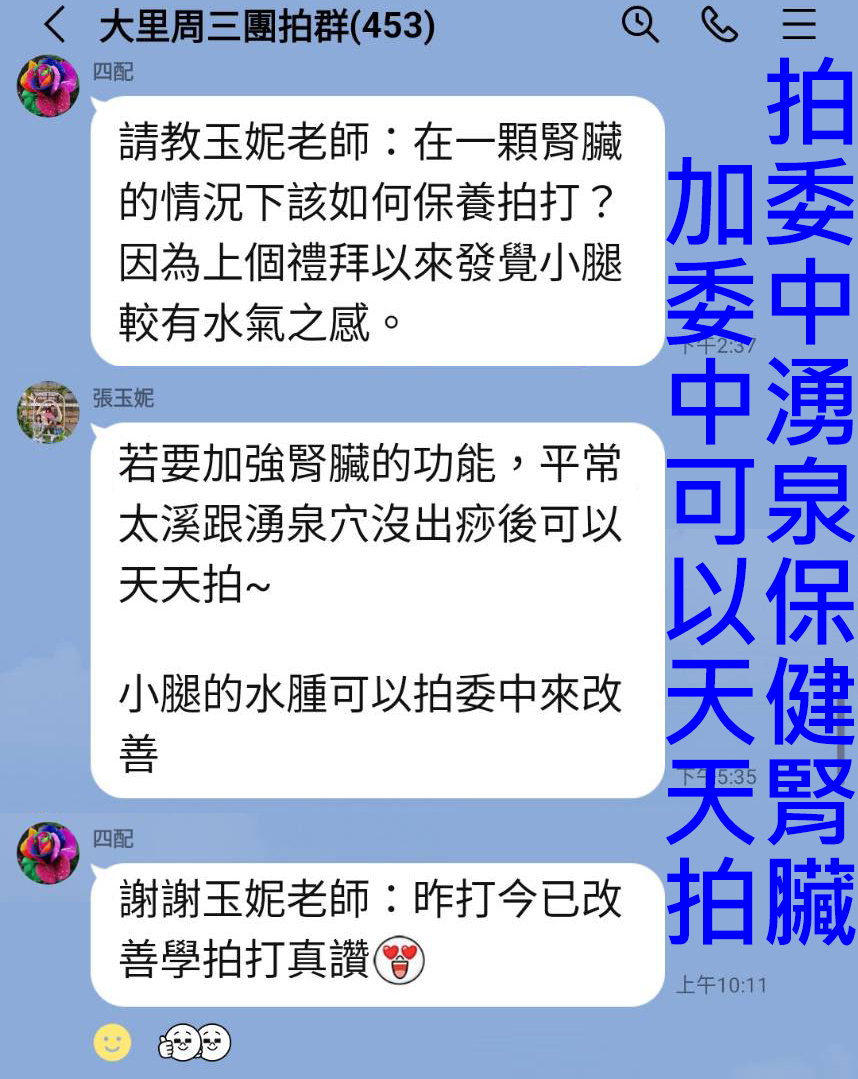 腎方面的症狀在拍打時: 委中和湧泉是重點,可以經常拍,一直拍到大力拍都不痛為止!