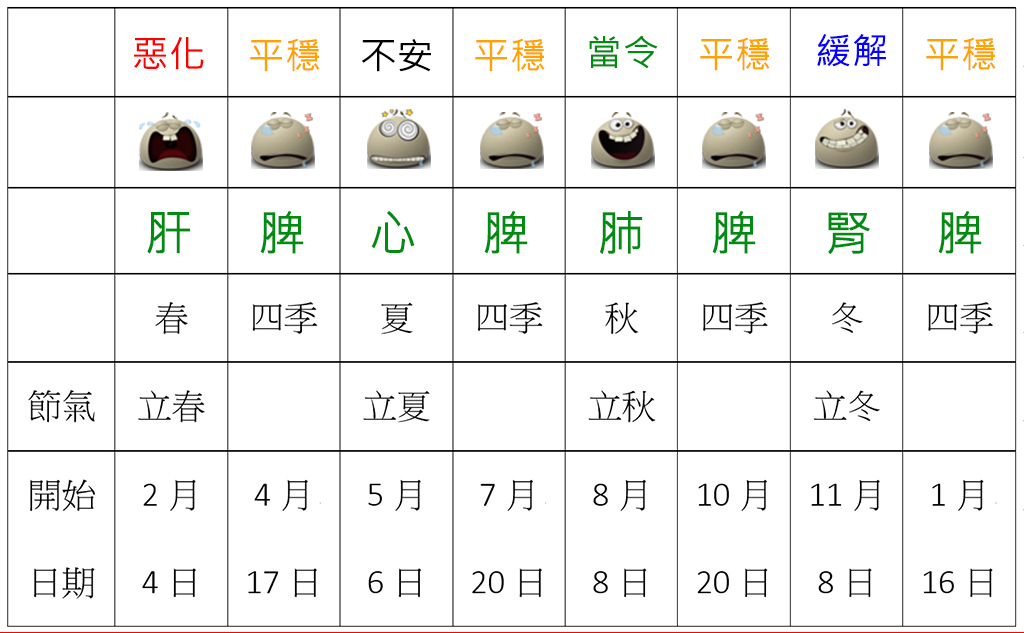 通常會在半夜(3點至5點)時顯現不舒服的症狀。許多有肺病的人不知道為什麼會在清晨的時候特別嚴重,咳嗽氣喘特別劇烈,肺經在這個時候運行,便可以輕易解釋這個現象。