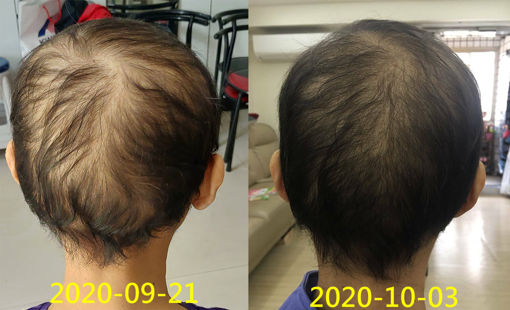經道家拍法後,僅四個月就長出漂亮濃密的頭髮了。