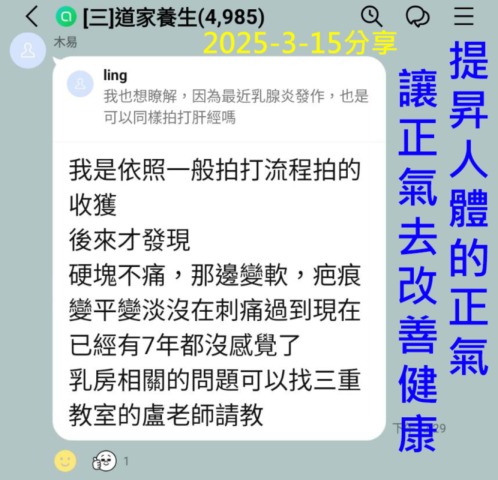 道家拍法也是一樣,主要就是後背+8虛提昇正氣,然後依各種拍友的症狀,加強比較虛弱的臟腑原穴和陰陽對位改善健康。