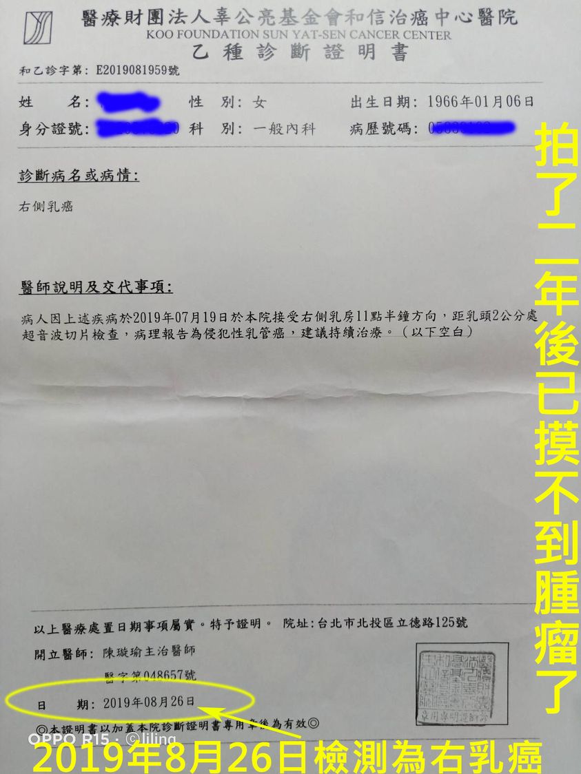 現在她已摸不到腫瘤了,同時也改善了以下的症狀: