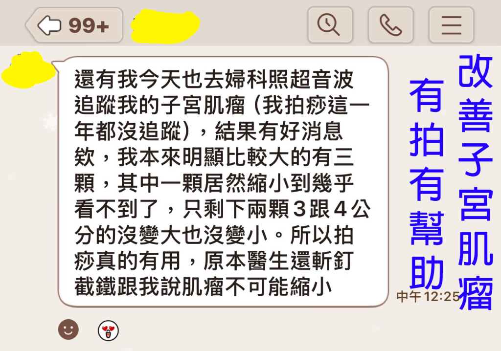 〉〉腰痛和背痛都遠離不見了,肌瘤也有改善;