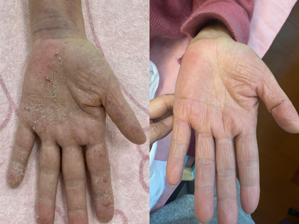 附圖這位姐姐的手已經粗糙裂到家門的指紋鎖都打不開;發作的時候半夜起來癢到無語問蒼天!