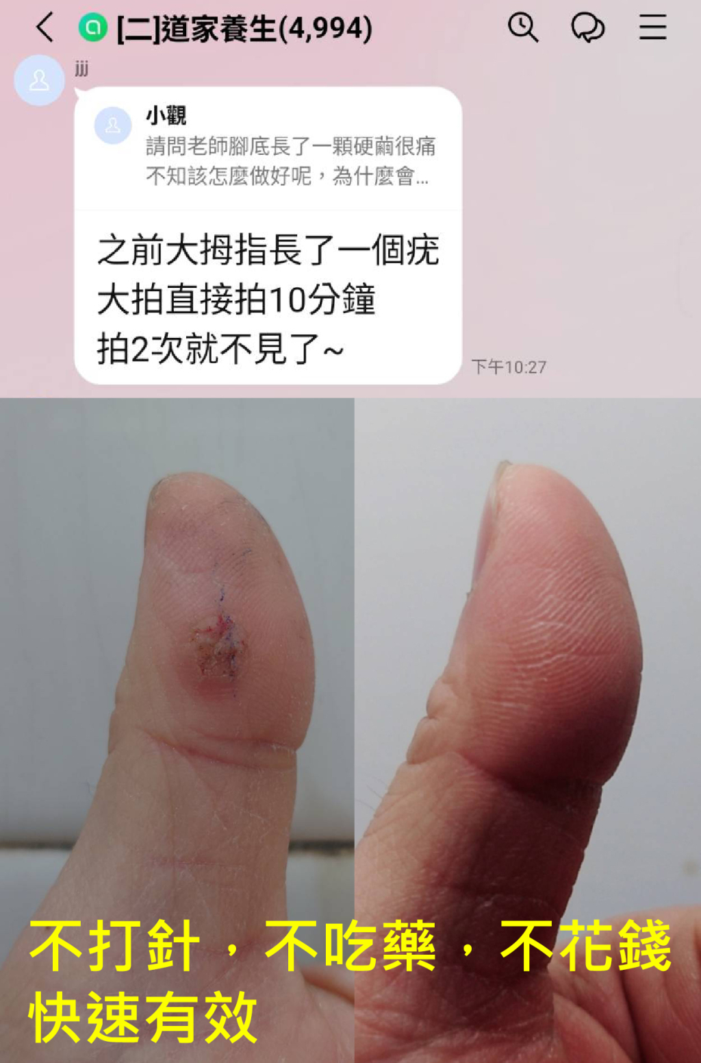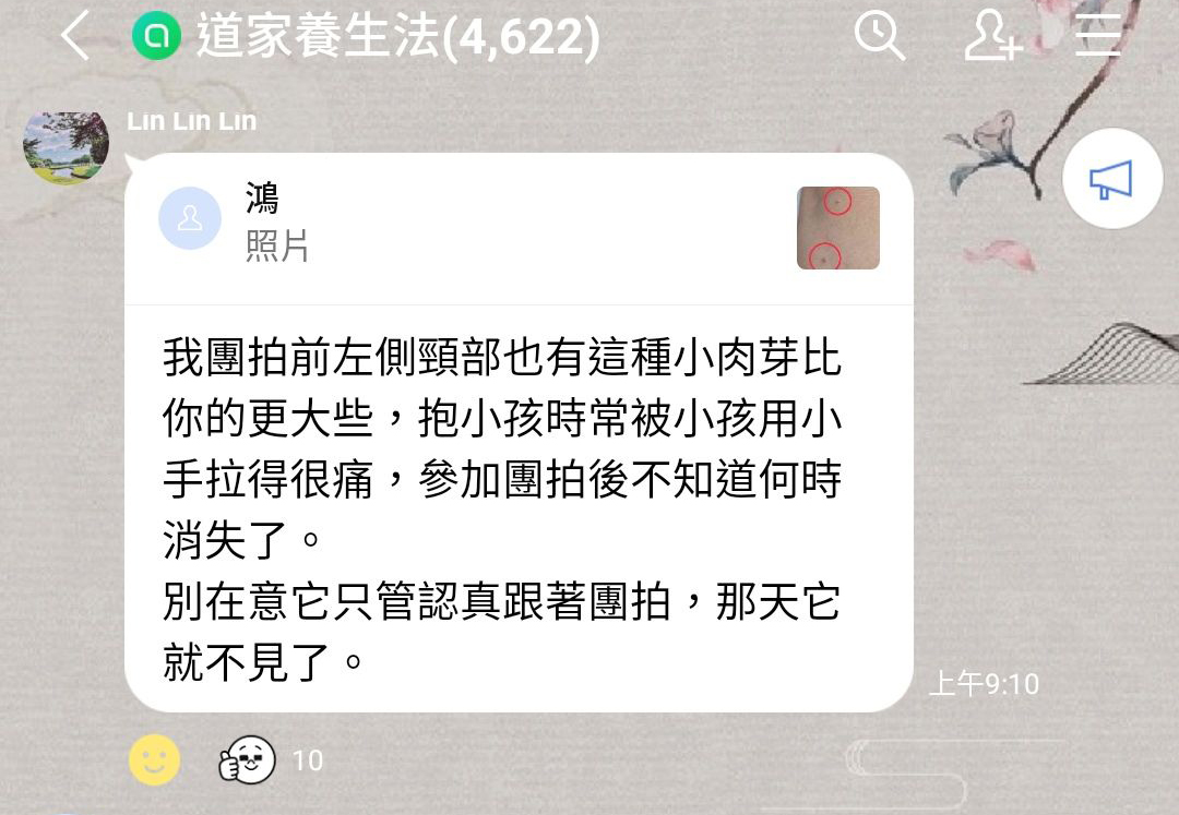 一樣的位置,拍了三個月後,她解決掉了二個大粉瘤,且是治本的,因為助拍後改善了她的心臟,日後就不會再長粉瘤了!