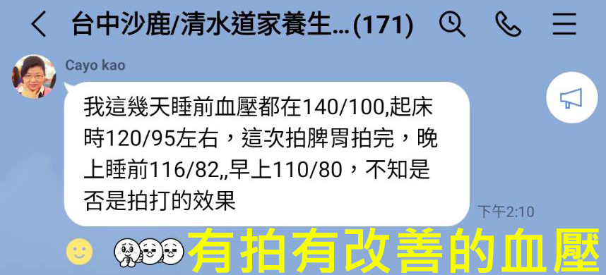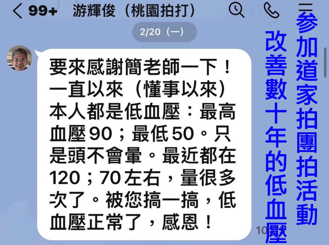 按道家拍法的標準流程拍,改善血壓是雙向的;
