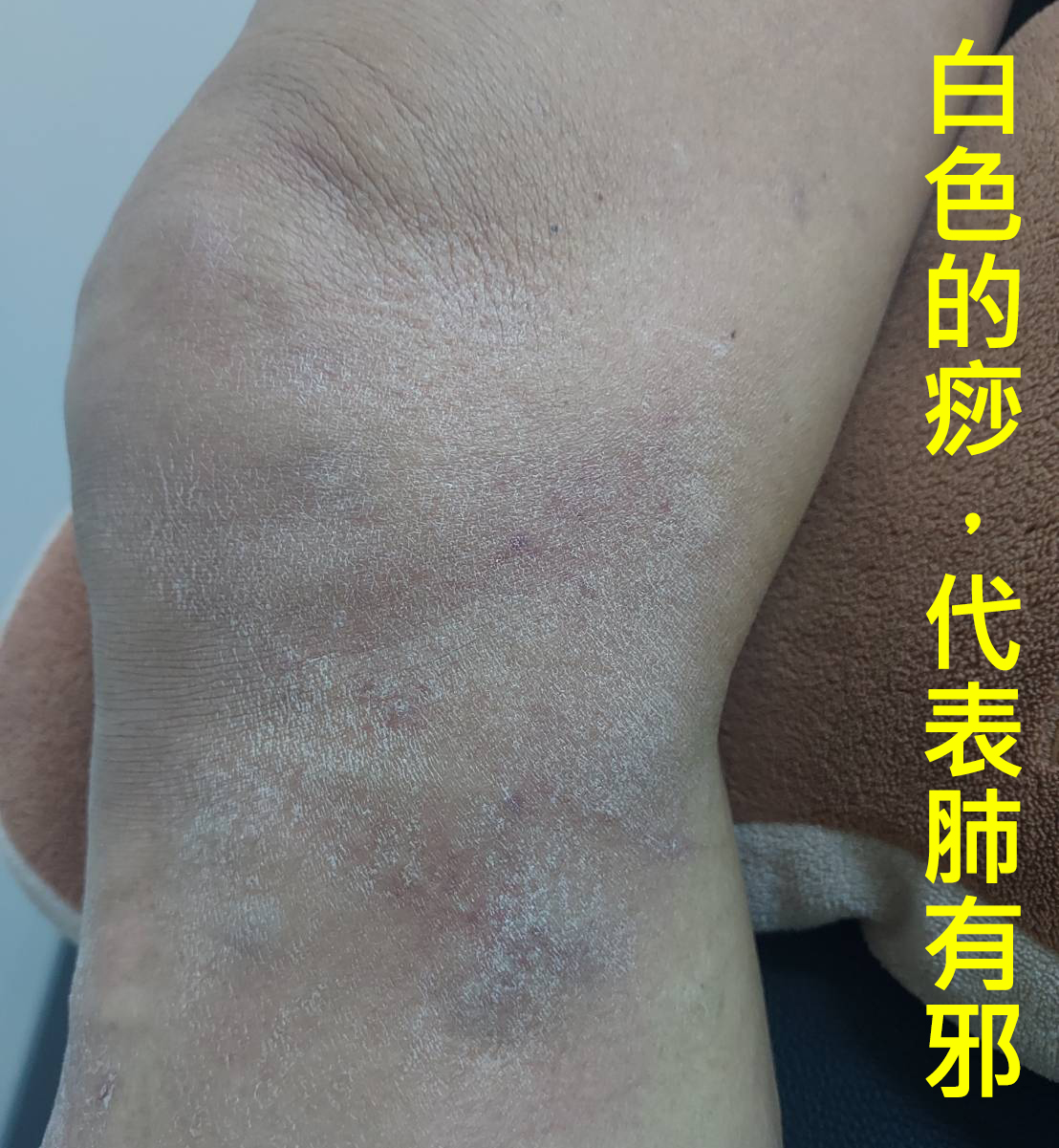 偏白的痧,肺大腸的經絡要清瘀,急的時間拍8虛的手肘改善