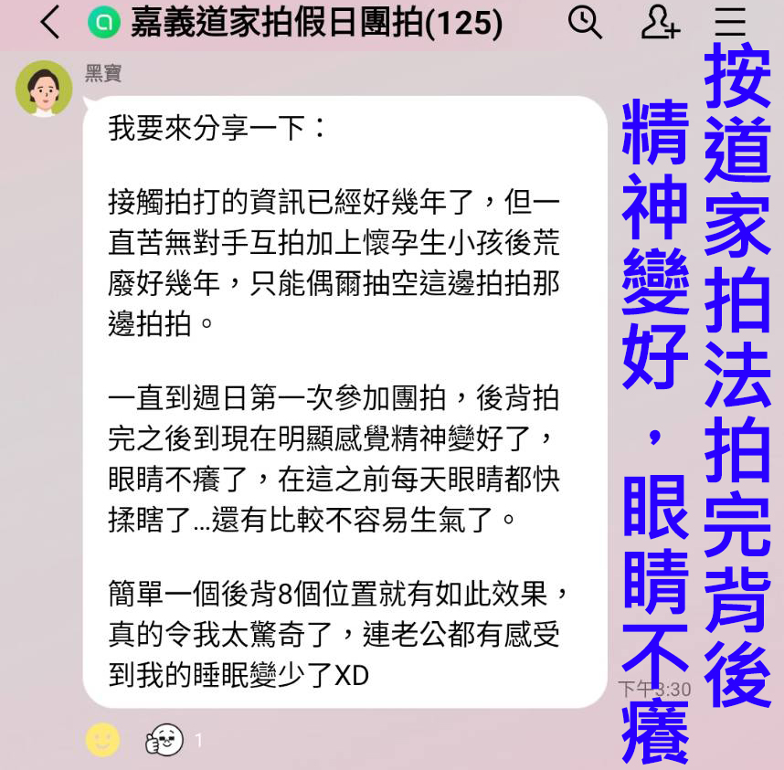 問:可以每週只重複單純拍後背即可,待整體精神感覺好時,再按不同主題拍打?