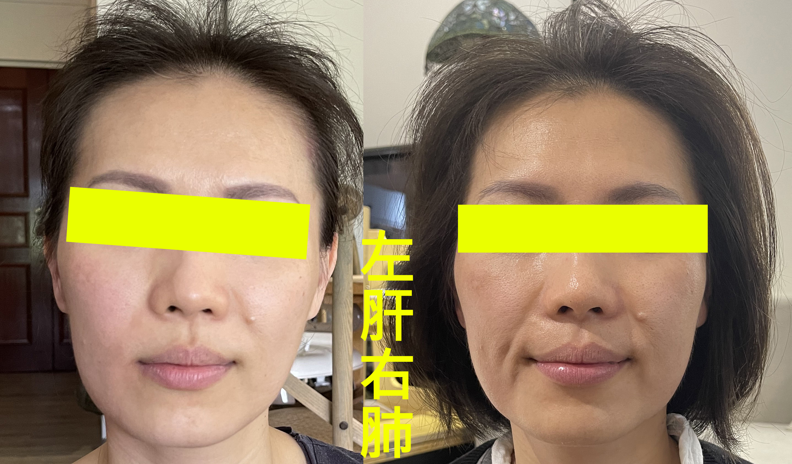 臉頰的右側高是肺有實症,臉頰的左側低是肝膽虛弱了;