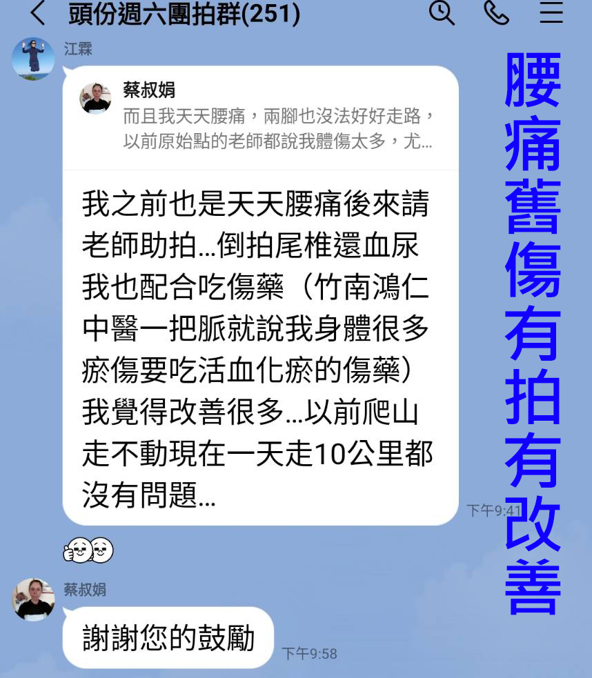 道家拍法用受傷的時間點來區分「新傷」和「舊傷」(含:開刀手術)!