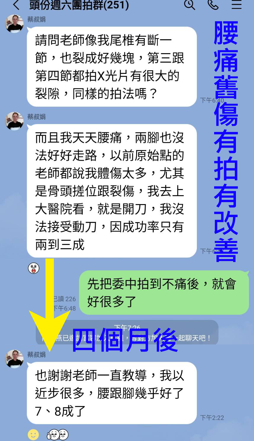 如果受到了外傷,或是手術的情形,待三個月後,身體的自癒力沒有完全恢復時,痛那裡就拍那裡,這是對的!