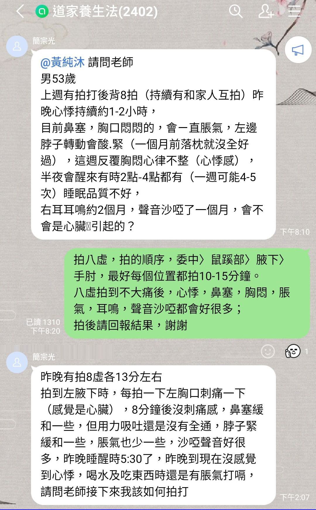 我們處理的時候要記得一件事情,就是不要被病名給混淆了。先觀察受拍者所表現出來的症狀,是屬於那一個臟腑,然後針對那個臟腑的八虛施以拍打,就可以解危急的症狀了。