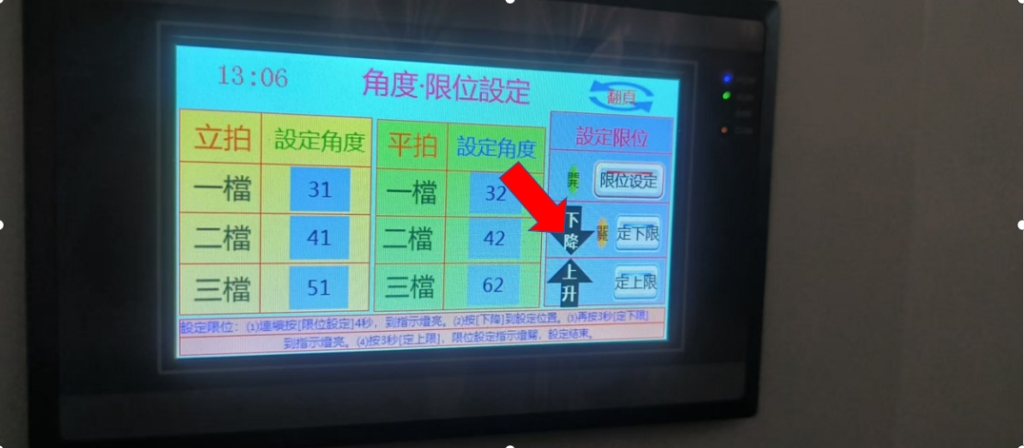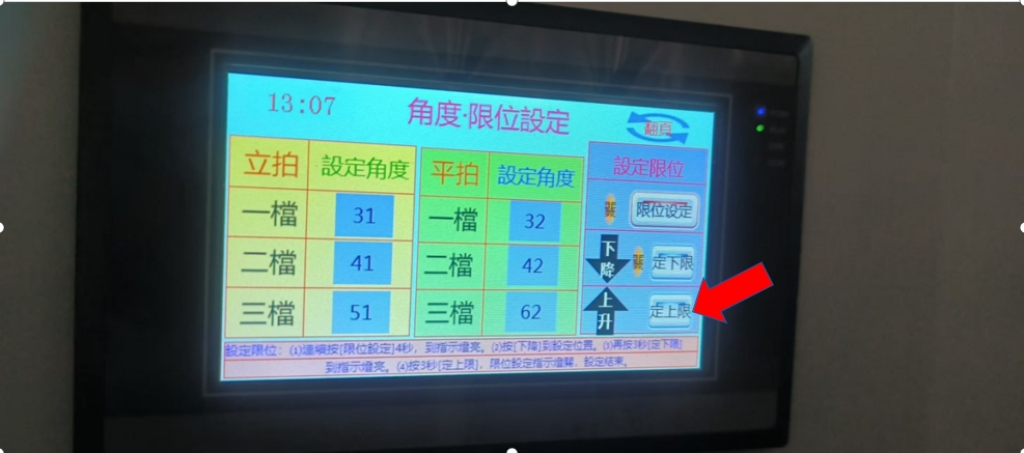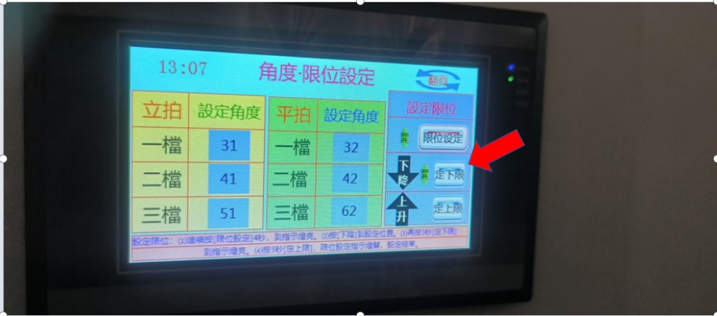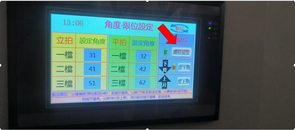 进入限位设置界面后,按住限位設定4秒,直到色指示燎亮(關→開) 如下图