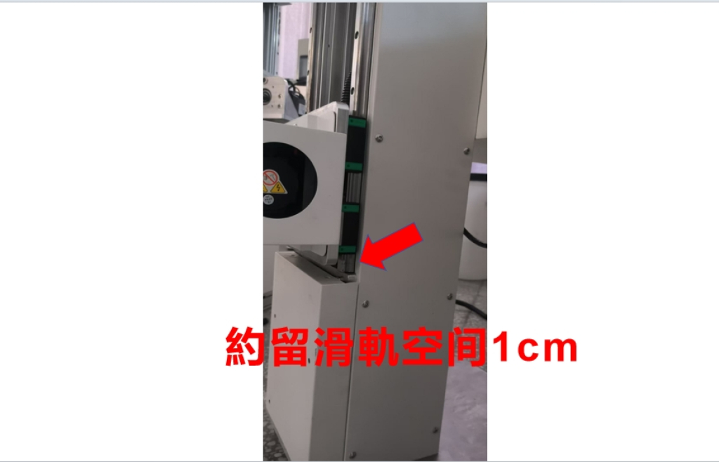 按黑色下降键到移動馬達到滑軌尾端,約留滑軌空周1cm