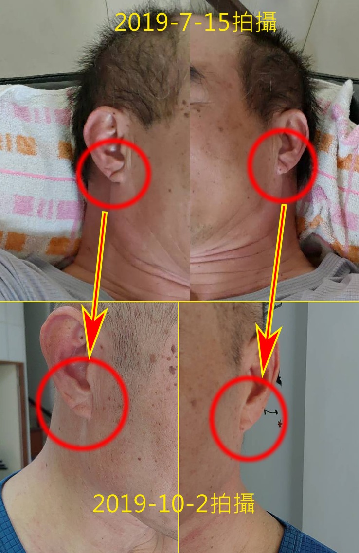 20240728 助拍的時候,看到大姐耳垂的摺痕少了很多(如附圖二)在助拍結束後,拍照當下的耳垂,再比對年初的照片,進步很多。