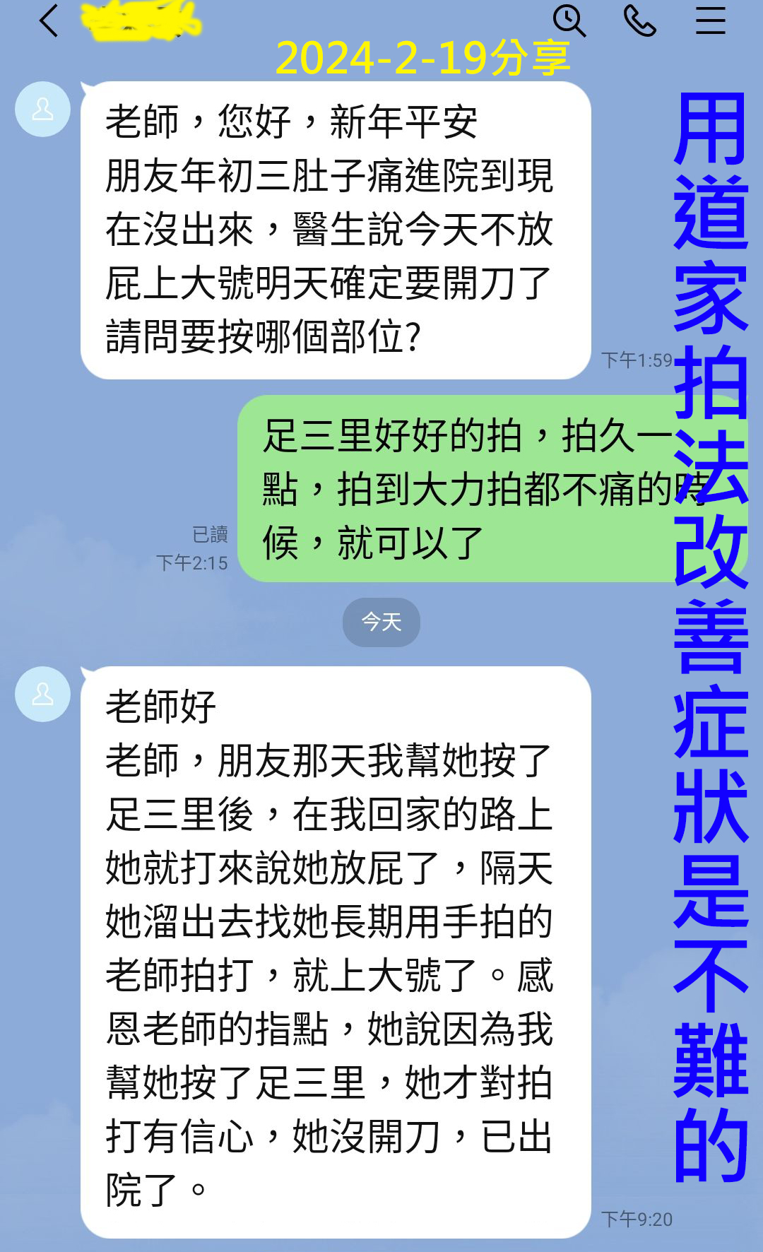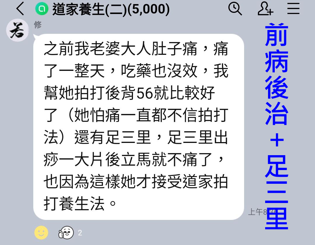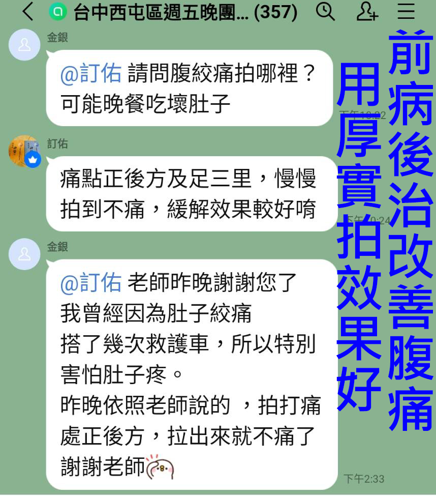腹痛時,[前病後治] 拍後背對應處改善