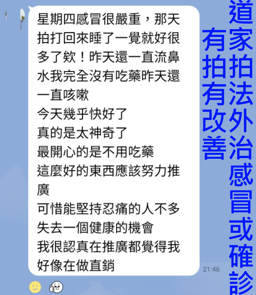 但是道家拍法還是可以讓他好吃好睡,聲音宏量,週身沒有任何的不舒服症狀;