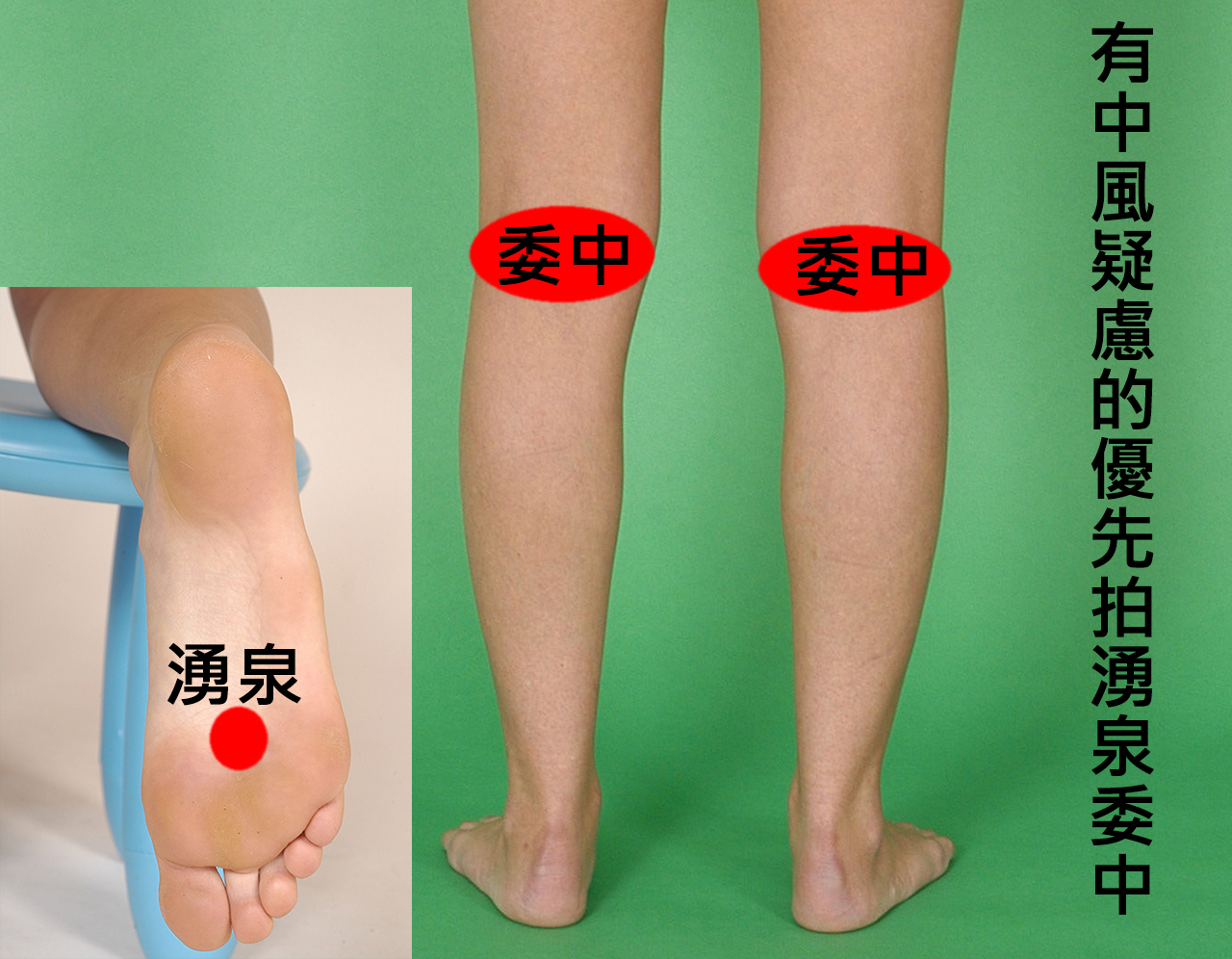 前三次的助拍,皆從腳底的湧泉開始拍,然後委中,鼠蹊部!