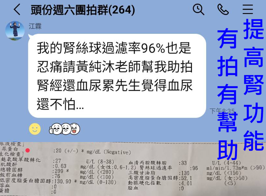 待拍打個一陣子後,可以檢查一下指數,看是否還需要洗腎;