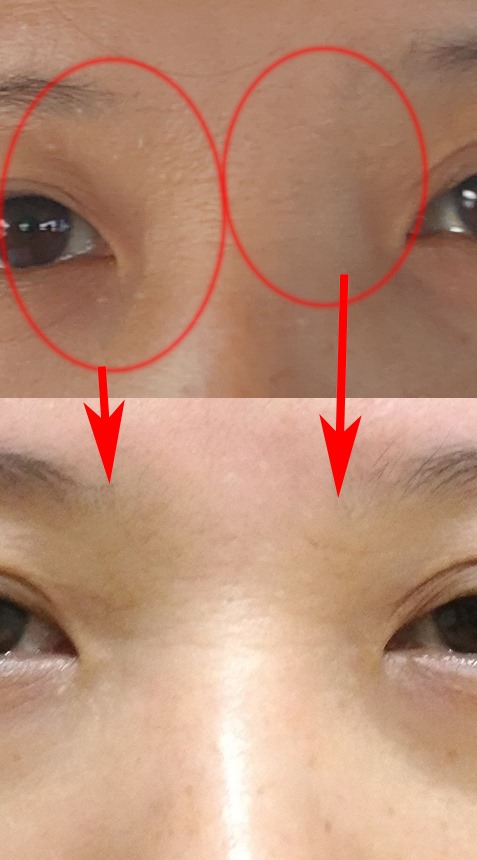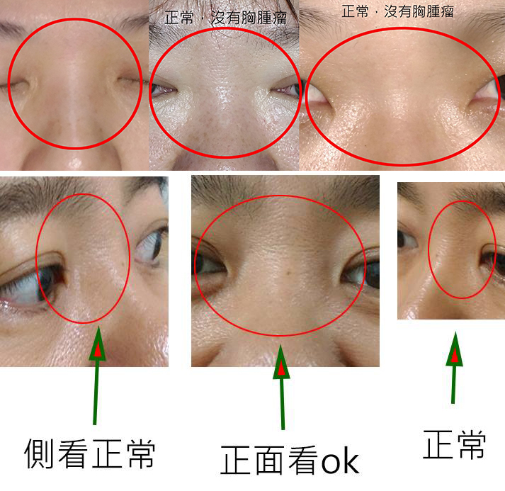 ◎ 臉部山根下方有異常表皮。