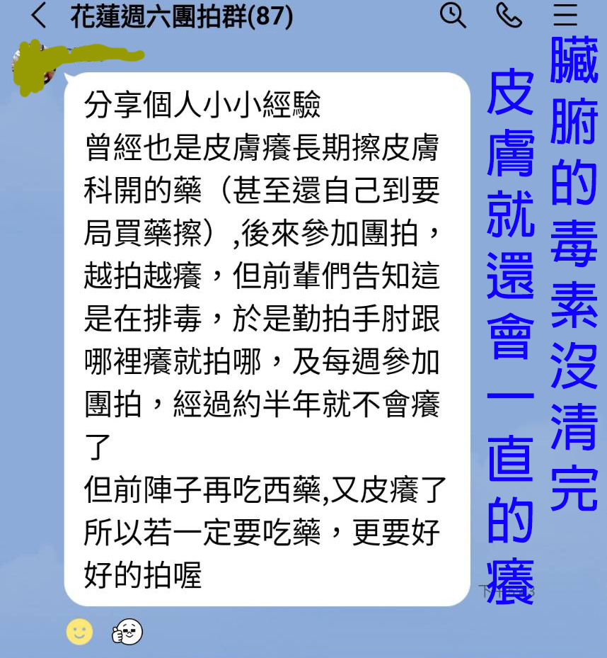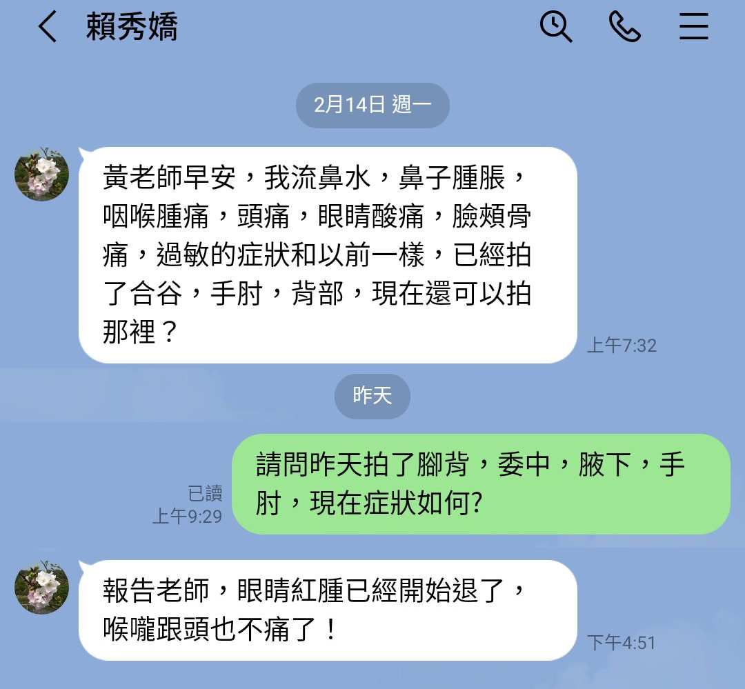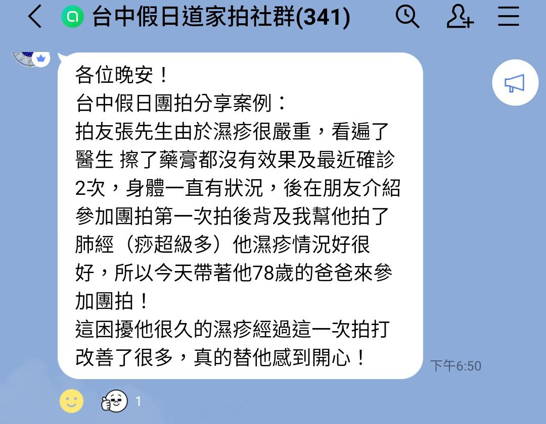 幸運的是,她参加了道家拍法的團拍活動,不到二個月就快速的恢復健康了,這種症狀對道家拍法來說,真的是很簡單的事;