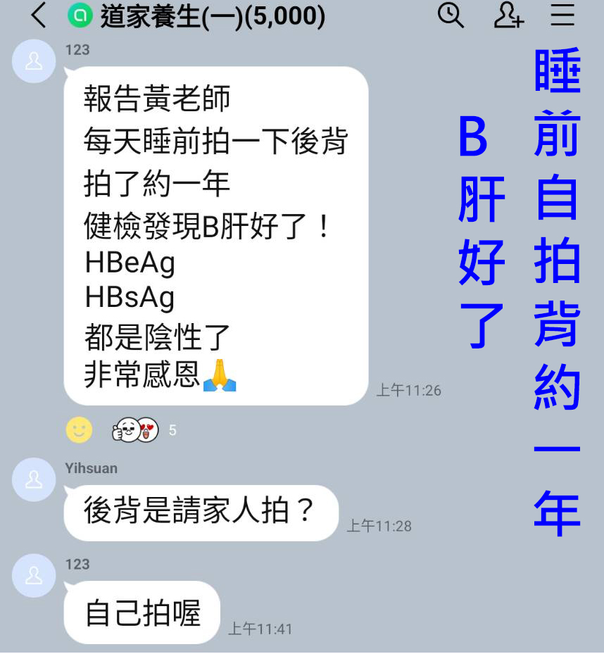 當拍打到一定的程度時,受拍者會有外感風寒的症狀,然後就恢復了,不會有肝炎了;