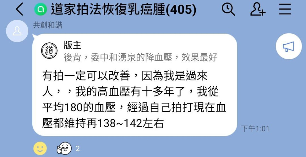 按道家拍法的標準流程拍,改善血壓是雙向的;