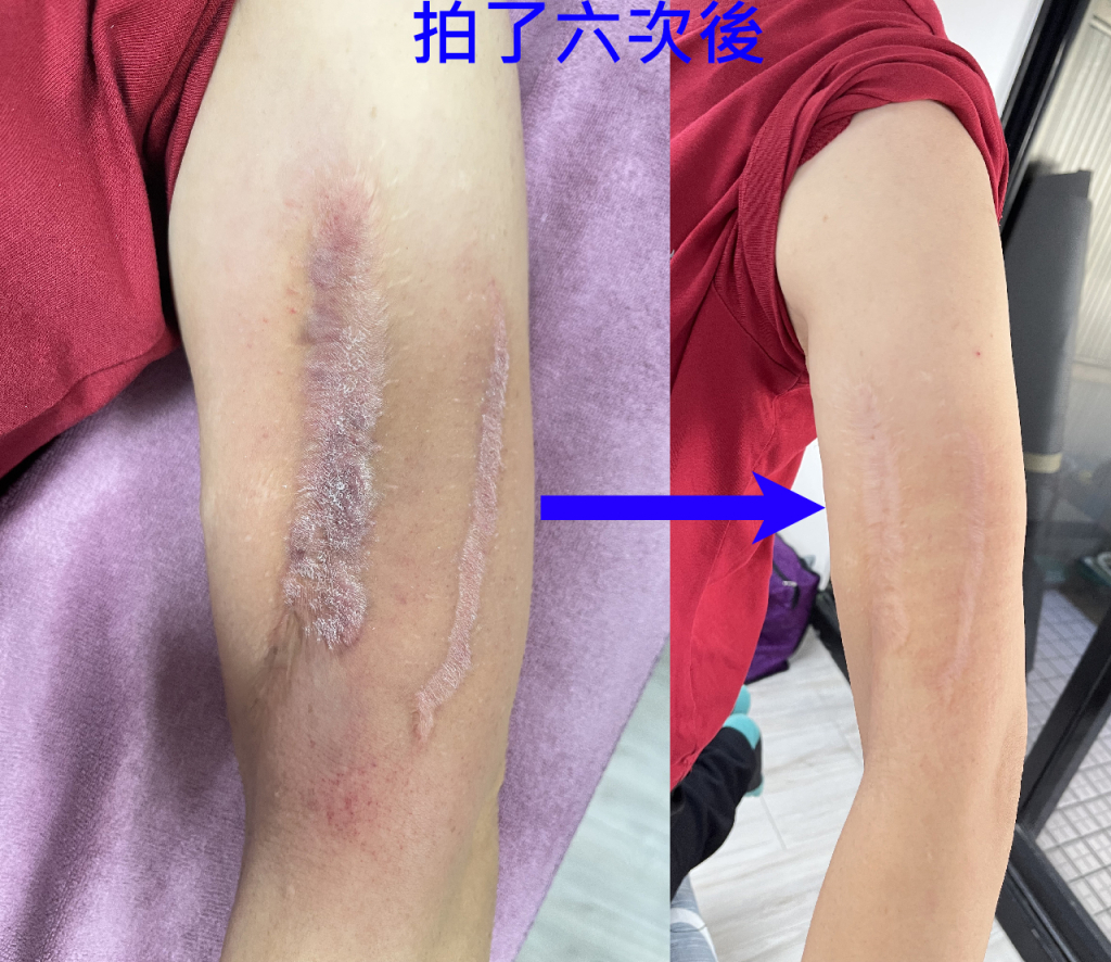 於是我們就開始,連續六次的拍打,一開始她忍痛,兩次後開始告訴我,手臂肌肉變鬆軟,舉手往高處放東西變容易,手部的冰冷改善了。