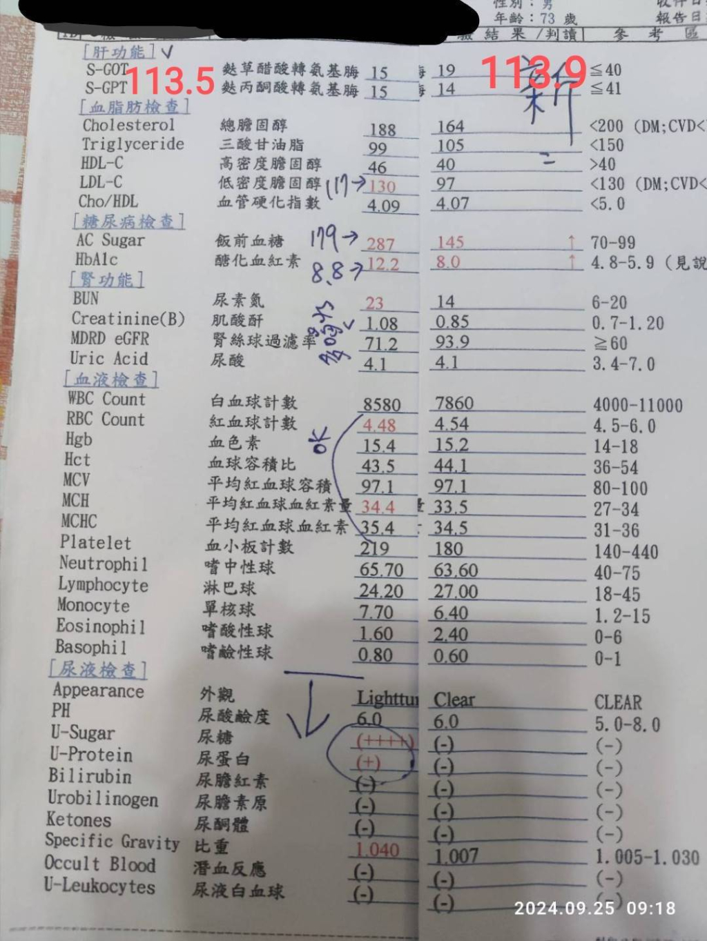 去年9月檢查是62.6,糖化血色素7.8。