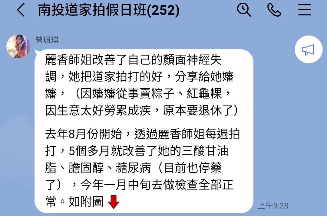 一位師姐熱情的介紹拍打的好處,半信半疑就留下來參加拍打。