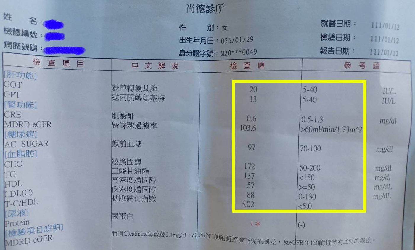 附上檢查報告,以供養師兄師姐們。
