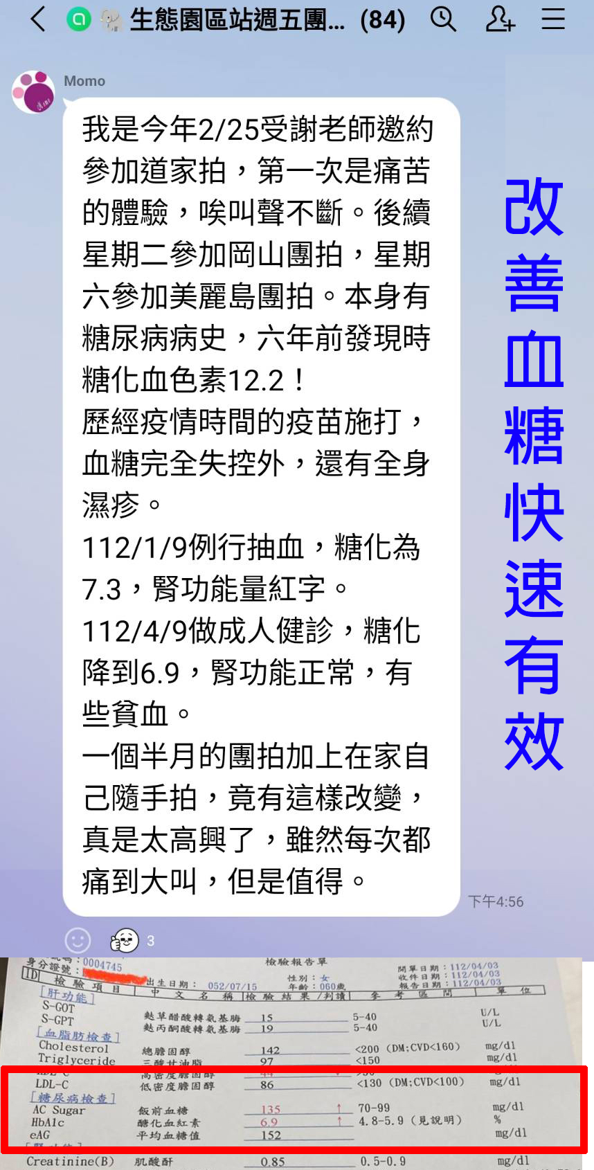 案例:團拍老手助拍改善糖尿病(含檢驗單)