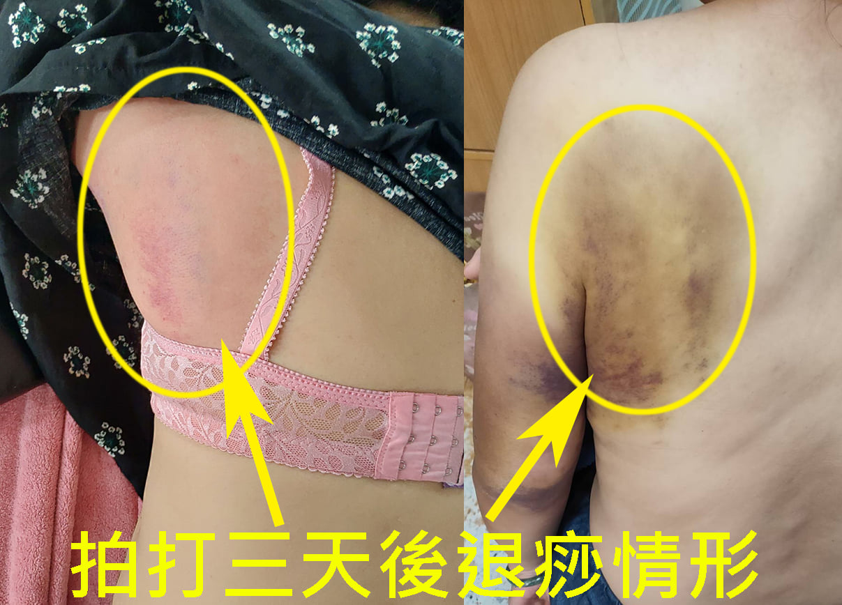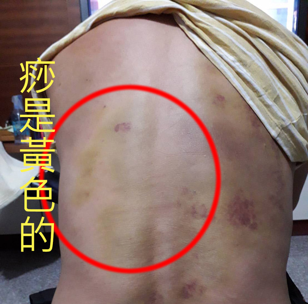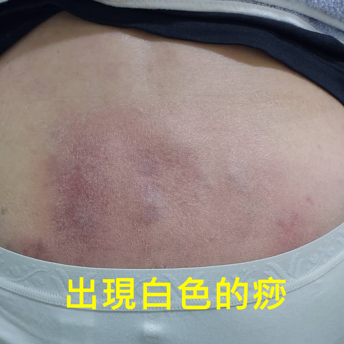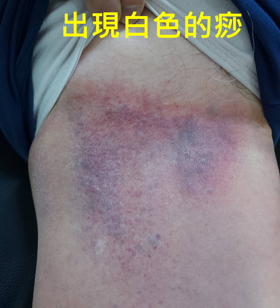 拍打後的出痧情形,看起來就好像是皮下出血一樣;