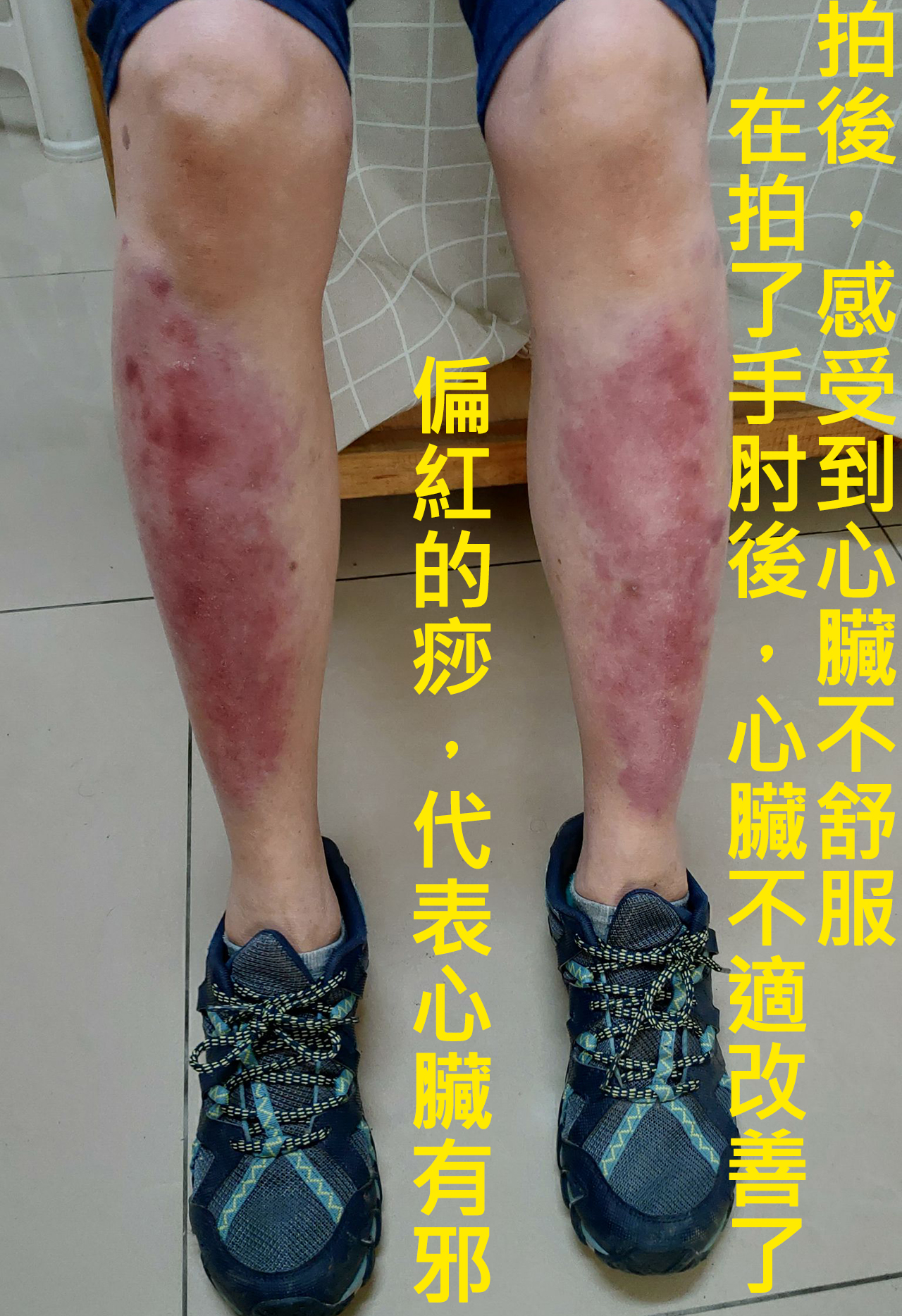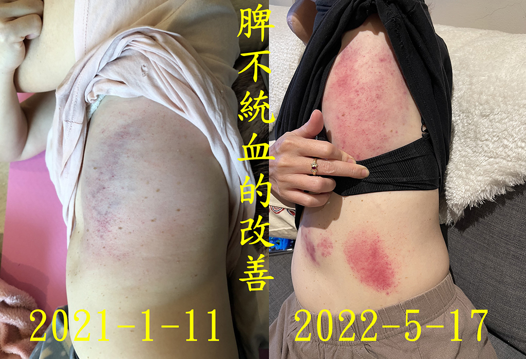 助拍大約十次後,脾不統血的情形就好多了,出痧的情形也不會有皮下出血的情形了。
