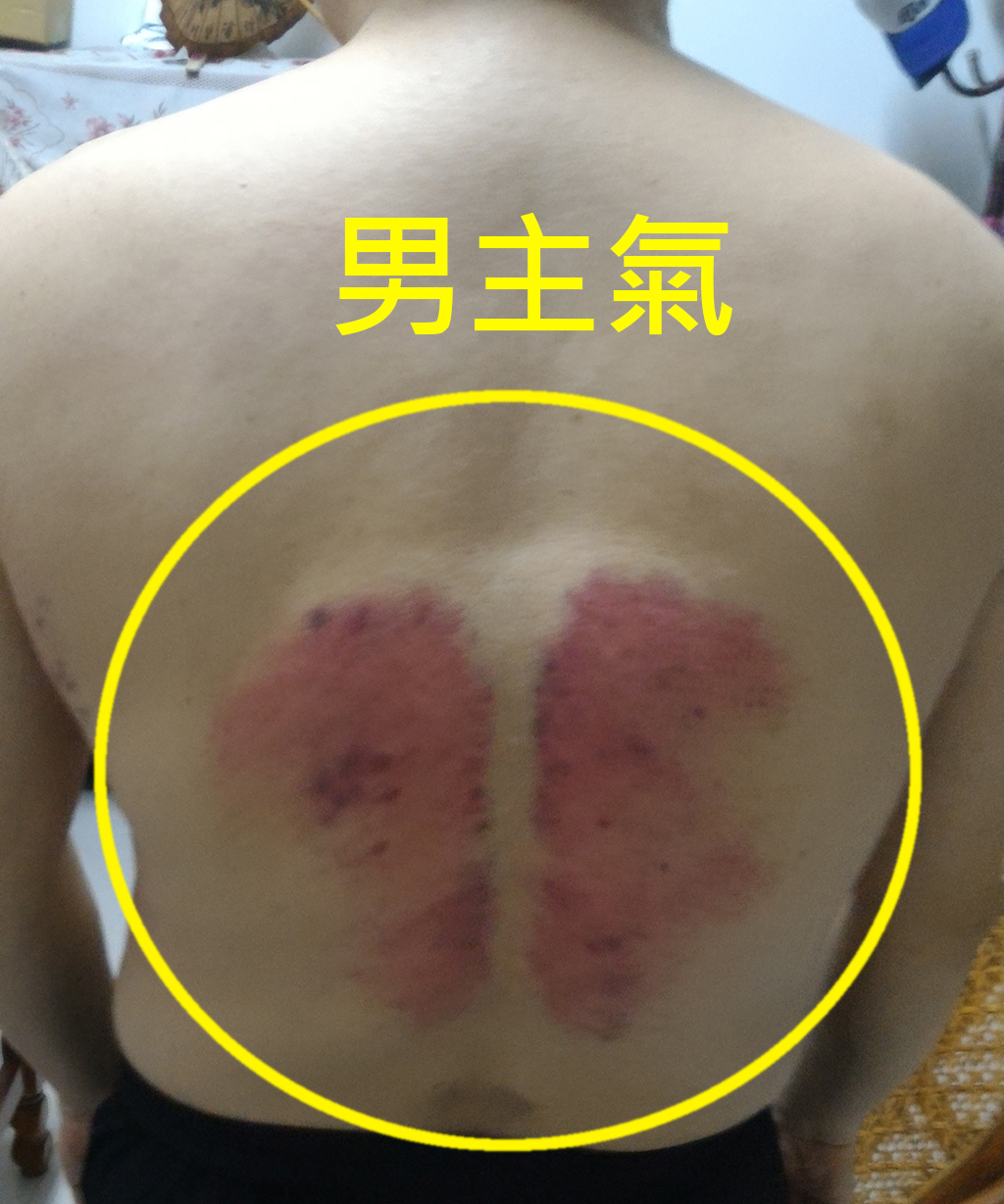 出痧表現了古漢醫說的男主氣,女主血的意思;