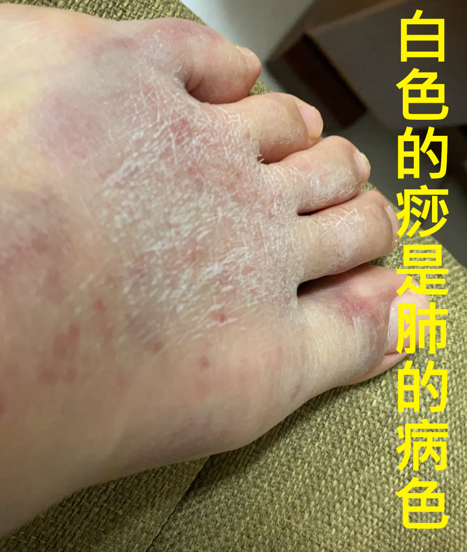 肺大腸的病色為白色,而肺主皮毛,所以拍打後,特別容易出現發白的皮膚屑屑;