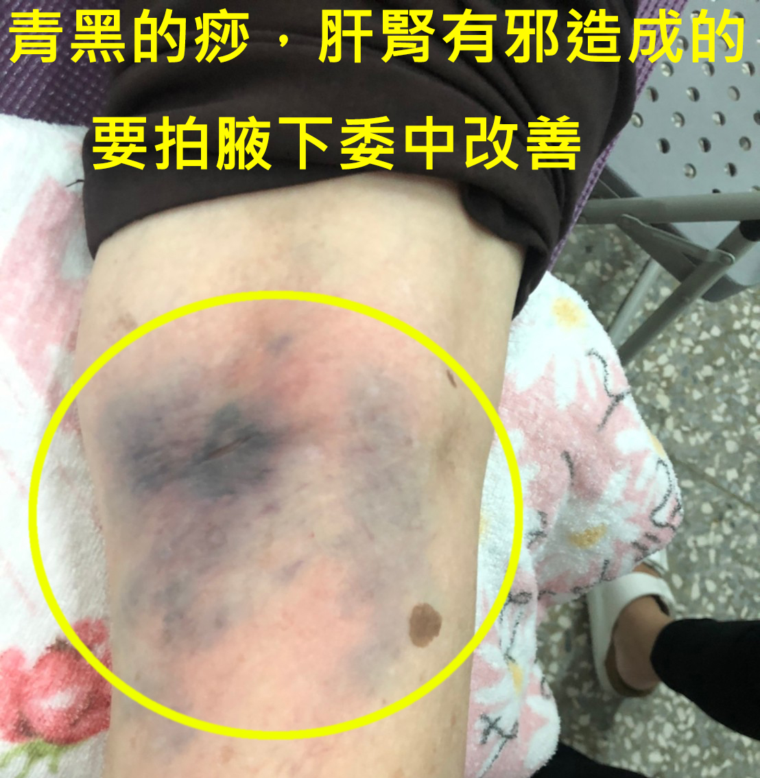 偏黑的痧,腎膀胱的經絡要清瘀,急的時間拍8虛的委中改善