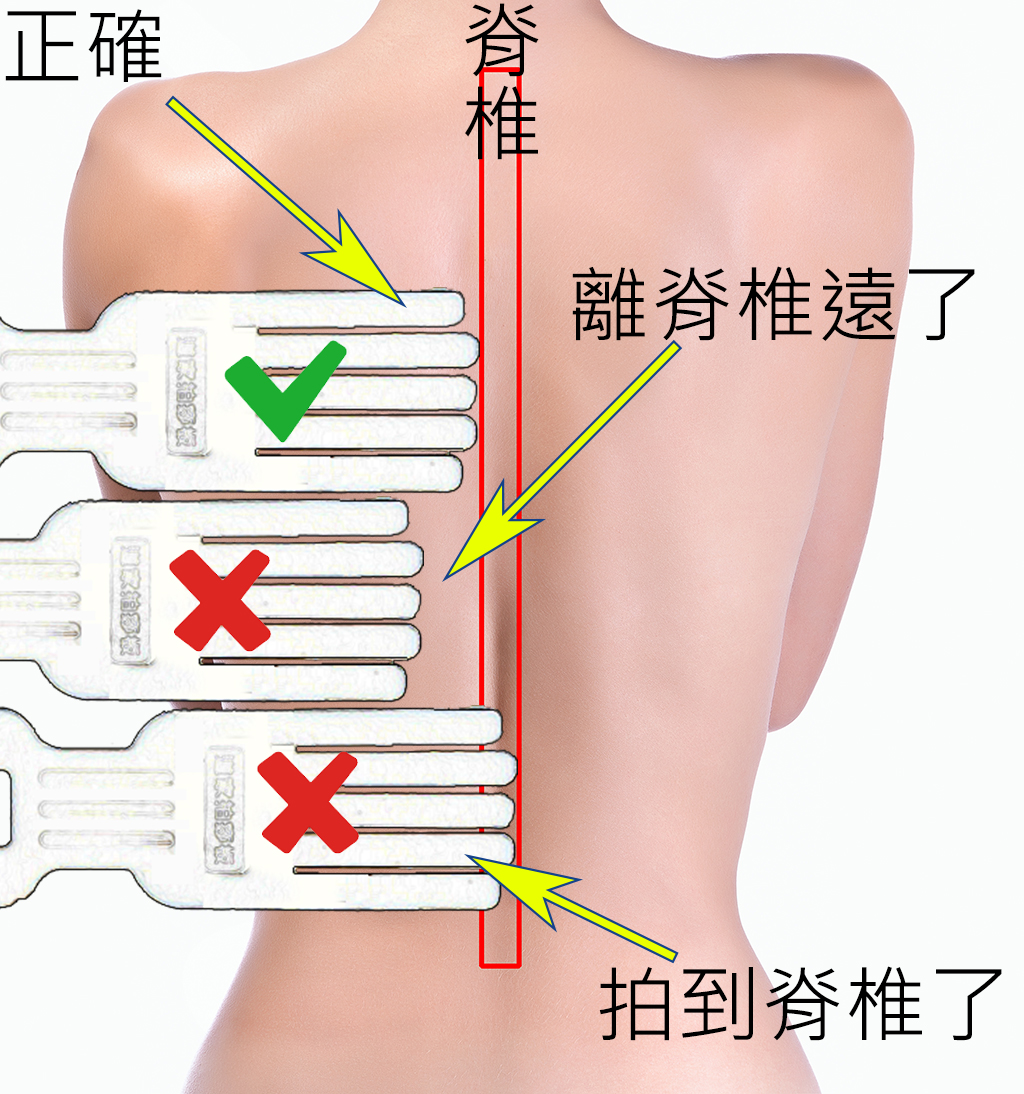 左右(X軸):貼近脊椎為準,但不用拍到脊椎位置;