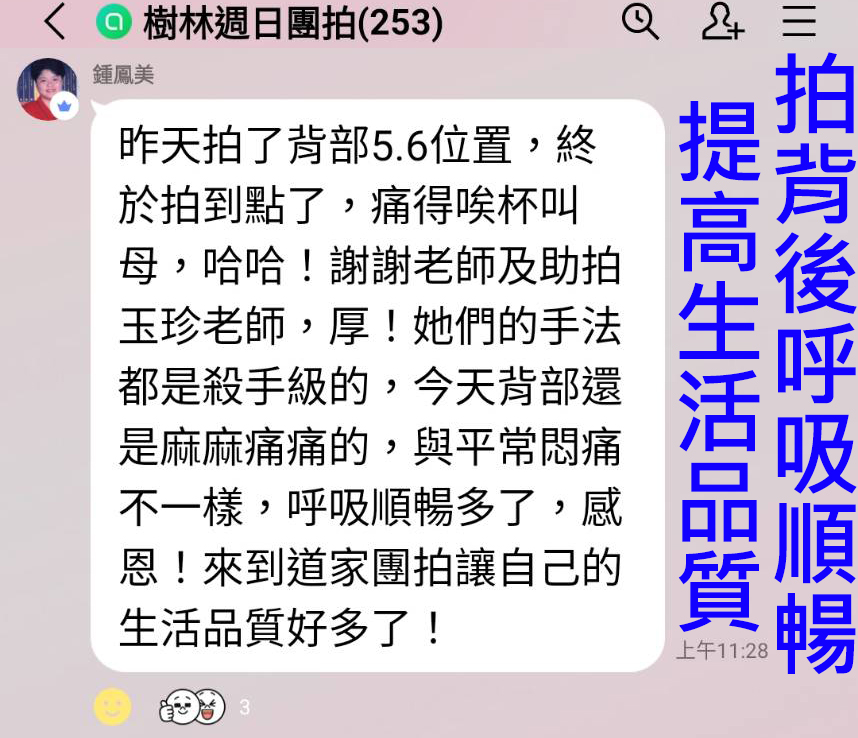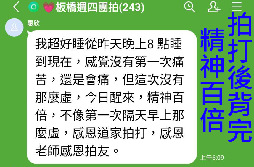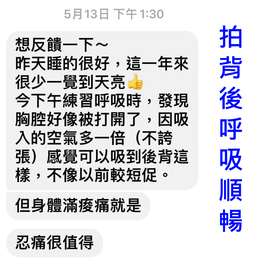問:可以每週只重複單純拍後背即可,待整體精神感覺好時,再按不同主題拍打?