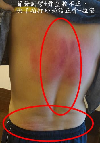 以下二位的後背,一看就歪的,這種情形除了拍打外,尚需要去做正骨;