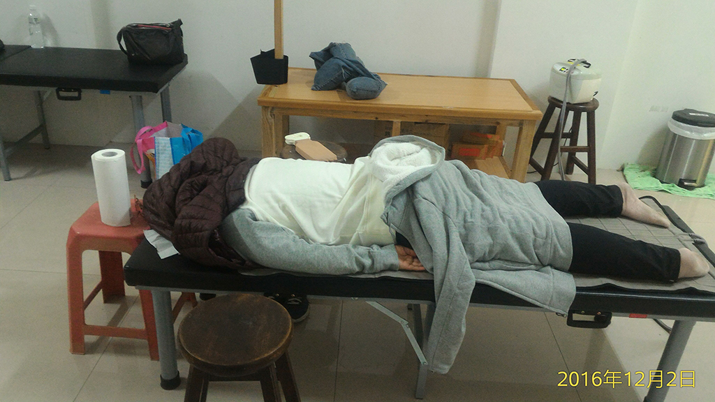 拍後背時,每個位置10分鐘+手肘10分鐘 = 約二小時;